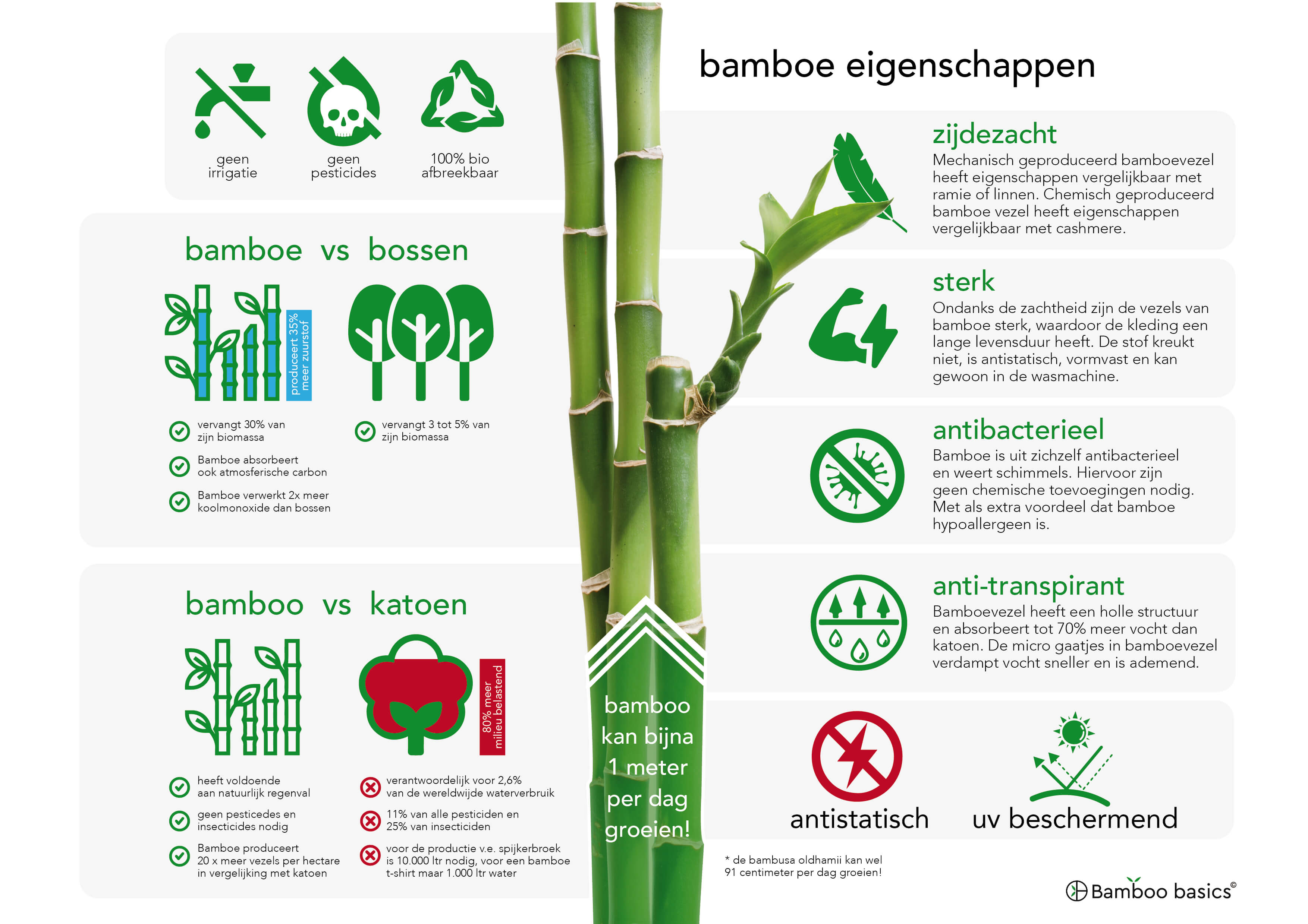 - Bamboe is een natuurlijke snelgroeier en deze heeft weinig onderhoud nodig. Ook het gebruik van pesticiden of bestrijdingsmiddelen is niet nodig.